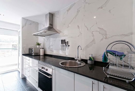 • Cocina equipada (horno, microondas, heladera, cafetera, vajilla, etc)